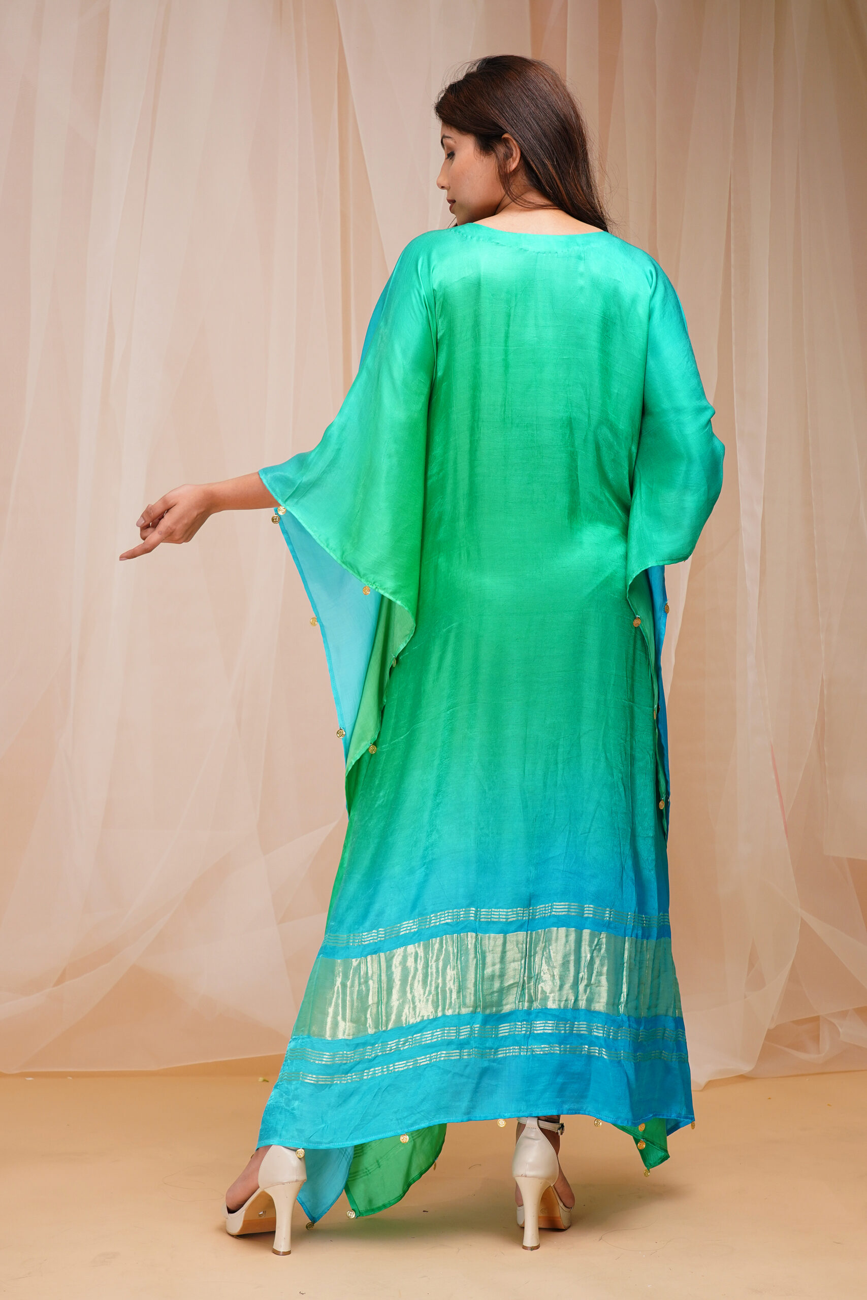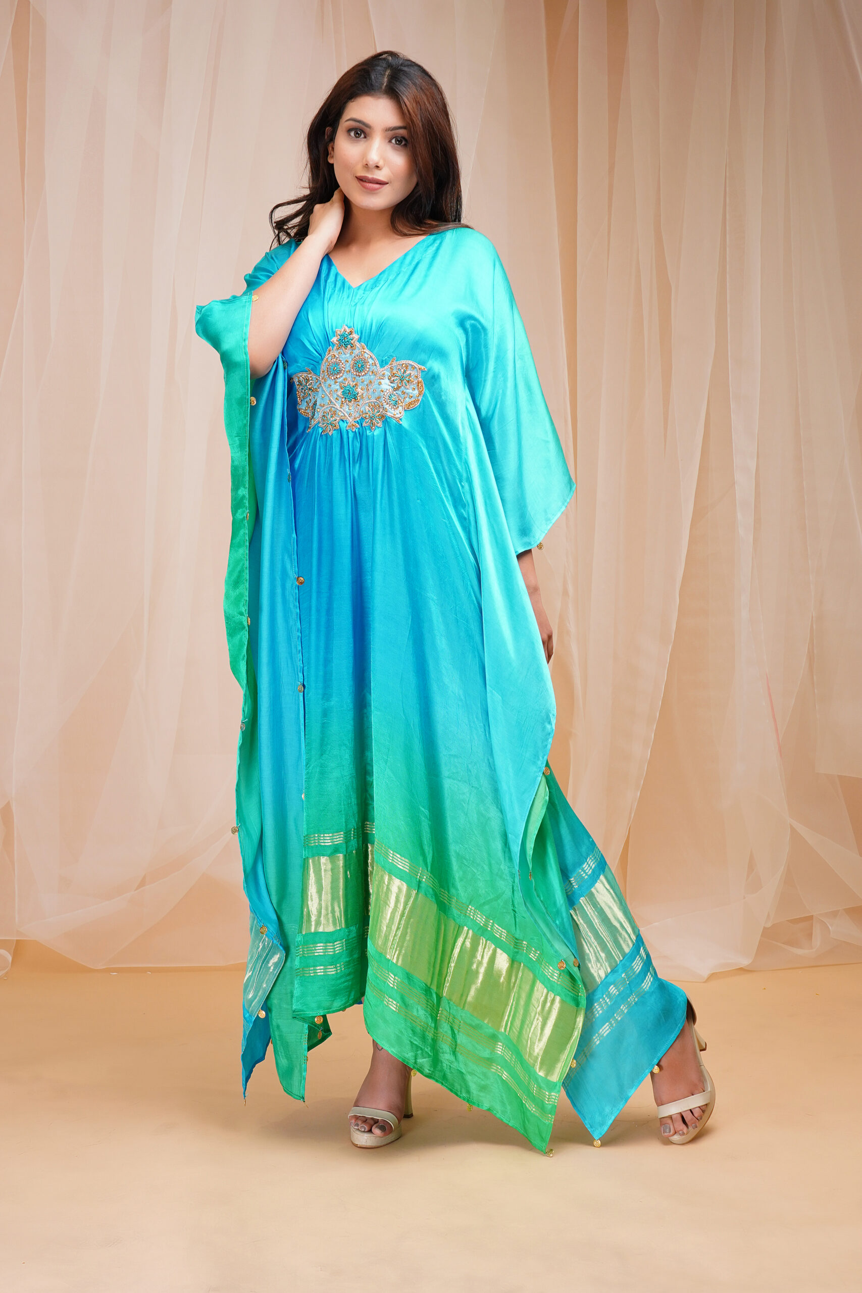 Hand Embroidered modal satin silk kaftaan